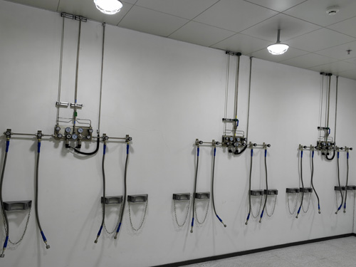 2.4N惰性氣體主要線選擇OD3/8”(6.35mm)的給水管,0.5Mpa各種壓力粗俗量達到8M3/1天,是完全具備傳統用氣消費需求,支線選擇OD1/4”(6.35mm)的給水管。用熔接三通管決出支路來對設施設備使用氣路。